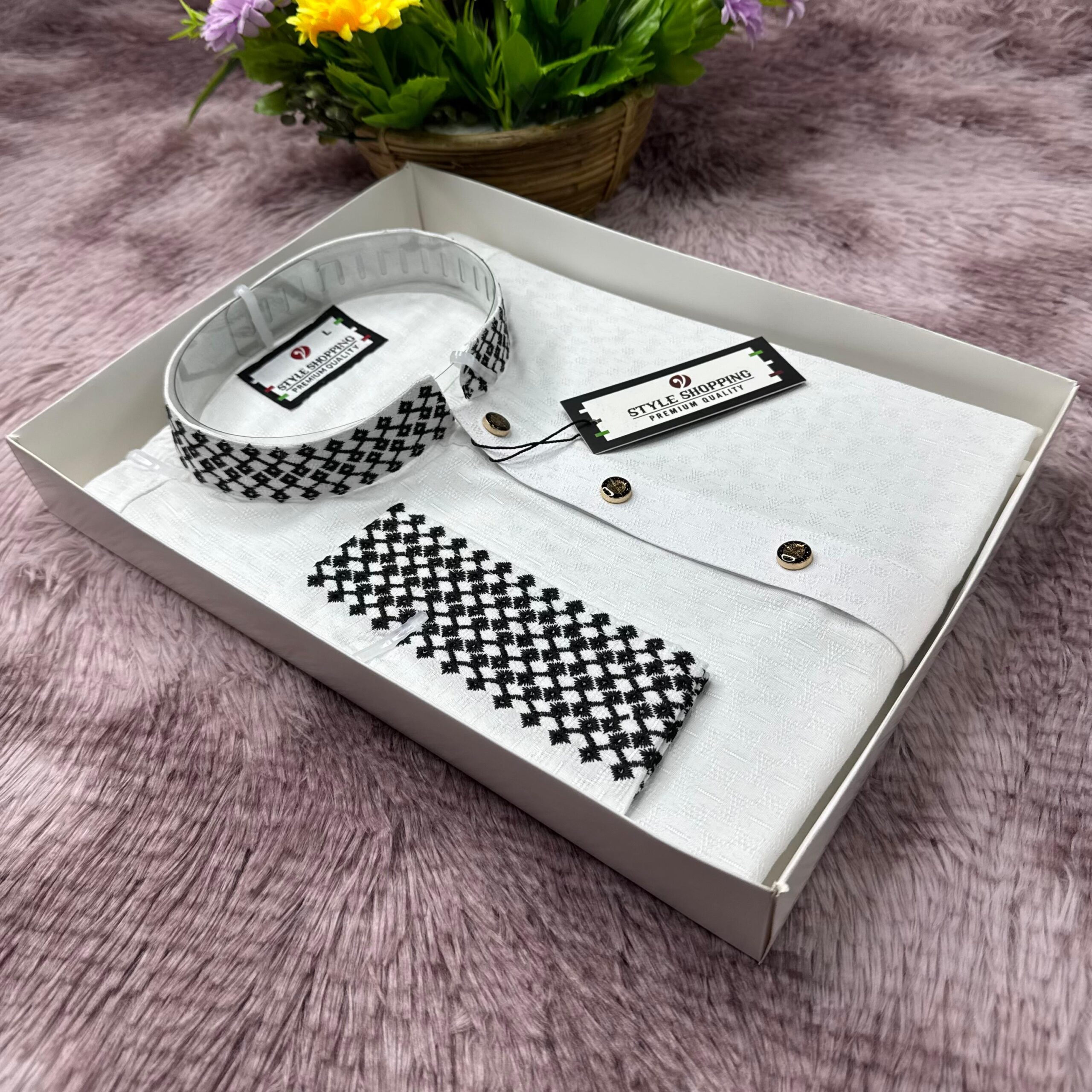 · ডিজাইন: কলার এবং প্লেটে নিখুঁত জিগ-জ্যাগ (Zic-Zac) এমব্রয়ডারি ওয়ার্ক করা হয়েছে।